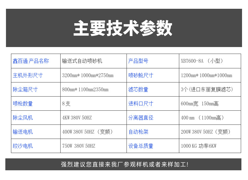 深圳鑫百通-XBT600-8A鉸龍款輸送式自動噴砂機